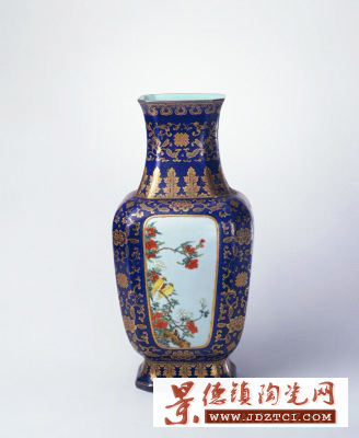 霽藍釉描金地開光粉彩花鳥紋方瓶,清乾隆,現(xiàn)藏于北京故宮博物院霽藍釉描金地開光粉彩花鳥紋方瓶,清乾隆,現(xiàn)藏于北京故宮博物院