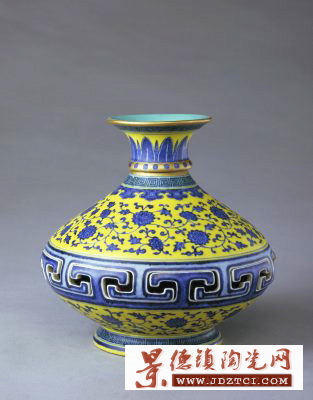 黃地青花纏枝花紋轉(zhuǎn)心瓶,清乾隆,現(xiàn)藏于北京故宮博物院黃地青花纏枝花紋轉(zhuǎn)心瓶,清乾隆,現(xiàn)藏于北京故宮博物院