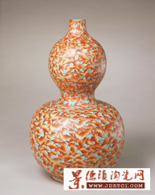 松石綠地礬紅彩云蝠紋葫蘆瓶,清乾隆,現(xiàn)藏于北京故宮博物院松石綠地礬紅彩云蝠紋葫蘆瓶,清乾隆,現(xiàn)藏于北京故宮博物院