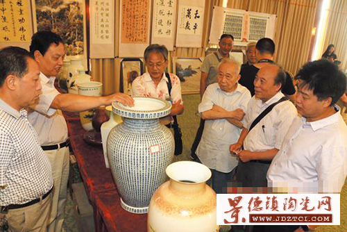 嘉賓參觀“瓷都珠山杯”全國(guó)陶瓷和書畫藝術(shù)作品聯(lián)展。(記者付裕攝)