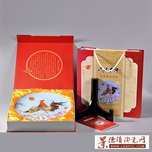 瓷盤包裝采用防震定型泡沫內(nèi)裝彩盒與手提袋相結(jié)合的整體包裝!洞椤范∮夏 生肖雞紀(jì)念瓷盤,畫面大氣、寓意美好、大師手筆,收藏、送禮、攜帶面子倍增。經(jīng)銷商電話/微信:18679865039(江經(jīng)理)