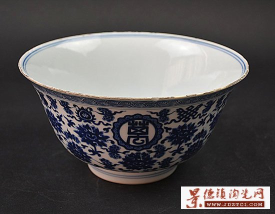 清乾隆 官 青花纏枝蓮?fù)邪藢氶_光萬壽無疆大碗 直徑 18.6cm
