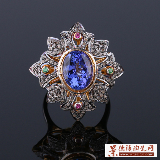 19世紀(jì) 愛德華時(shí)期坦桑石戒指 金銀混合 坦桑石4.2CT 鉆石1.1CT 總重量 10.6g