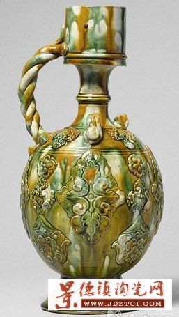 坂本五郎藏“唐三彩貼花雙系繩柄壺”