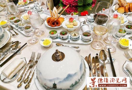 9月4日,G20杭州峰會(huì)于下午3時(shí)開(kāi)幕,當(dāng)晚,與會(huì)嘉賓在杭州西子賓館參加了歡迎晚宴。晚宴的餐具成為亮點(diǎn),取自西湖景致的山水畫(huà)被描繪于杯盤(pán)之上,杭州西湖的標(biāo)志性景點(diǎn)“三潭印月”也被搬上餐桌。也因其古樸,這套餐具被網(wǎng)友戲稱為乾隆的審美。