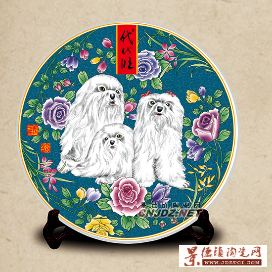 1、《代代旺》狗年生肖紀(jì)念瓷盤擺件工藝品