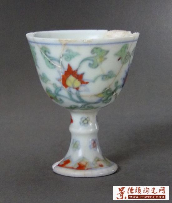 成化斗彩纏枝花卉高足小杯 景德鎮(zhèn)出土成化斗彩纏枝花卉高足小杯 景德鎮(zhèn)出土