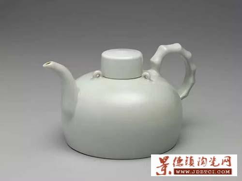 相同器形的瓷壺存世不多,臺北故宮另藏有一件器形相同,器身飾以鳳凰一對的青花三系竹節(jié)把壺,有學者推測兩者皆為明初宮廷用茶器。廣東臺山南宋沉船中,亦曾出水有類似造型的錫壺,也有學者據(jù)以推測其為穆斯林使用的湯瓶。