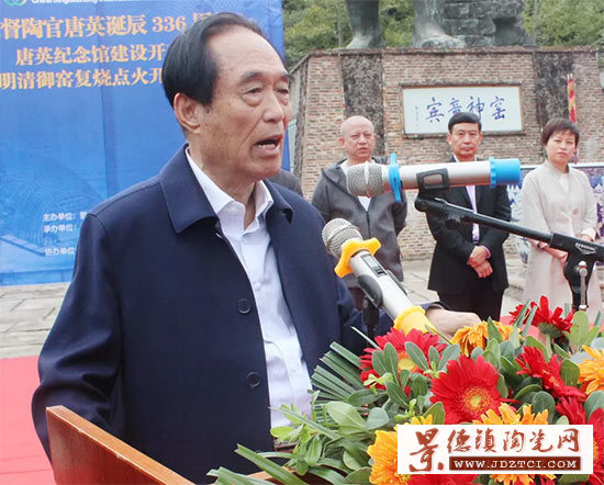 耿東升在致辭中說:“景德鎮(zhèn)古窯民俗博覽區(qū)作為國家5A旅游景區(qū)、國家級非物質(zhì)文化遺產(chǎn)生產(chǎn)性保護示范基地,不但成為景德鎮(zhèn)旅游和文化產(chǎn)業(yè)的旗艦,更是千年瓷都的一張瑰麗名片。集中保護了景德鎮(zhèn)陶瓷歷史文化與當(dāng)?shù)毓糯ㄖ幕z產(chǎn),并以傳統(tǒng)陶瓷、古典建筑之與陶瓷業(yè)者現(xiàn)場表演制瓷技藝之結(jié)合的文化遺產(chǎn)保護方式,加強陶瓷文化傳承保護,挖掘和保護景德鎮(zhèn)陶瓷文化資源,可謂創(chuàng)舉!惫|升說:“此次舉辦紀(jì)念唐英研討會以及籌建唐英博物館是具有非常重要意義的工作,是貫徹落實國家對非物質(zhì)文化遺產(chǎn)“保護為主,搶救第一,合理利用,傳承發(fā)展”的方針,不斷發(fā)掘優(yōu)秀的制瓷文化的又一大舉措。收集整理唐英的史料,展示公眾,以一代督陶的情懷教育后人,增強創(chuàng)造力?芍^功在當(dāng)代,育在千秋。作為新時代的陶瓷人,我們不僅要繼承弘揚中國傳統(tǒng)文化,更要將其發(fā)揚光大,這是歷史賦予我們的責(zé)任!