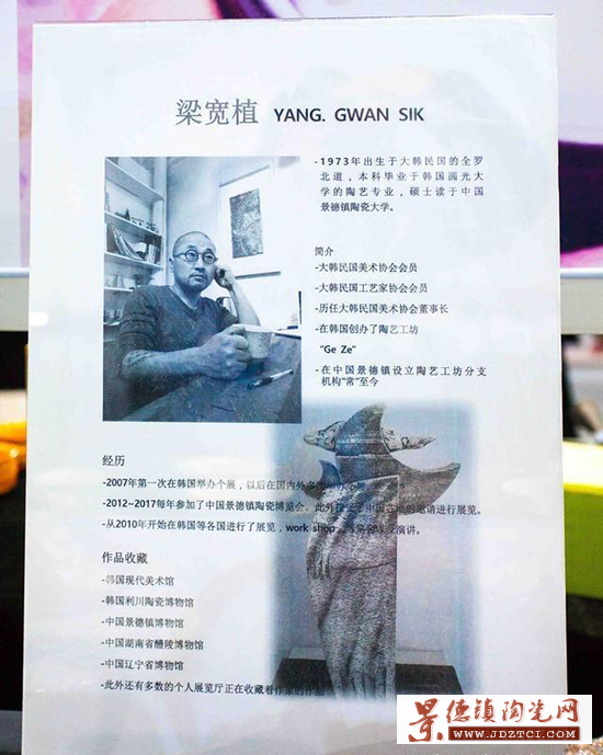 梁寬植;1973年出生于韓國全羅北道,本科畢業(yè)于韓國圓光大學(xué),碩士在讀景德鎮(zhèn)陶瓷大學(xué),師從寧鋼教授。1998年創(chuàng)辦韓國圪汄(Ge Ze)陶藝工坊。2011年在中國景德鎮(zhèn)設(shè)立圪汄陶藝工坊分支機構(gòu),一直致力于原創(chuàng)生活陶藝的研究及創(chuàng)作,F(xiàn)為職業(yè)陶藝家,韓國圓光大學(xué)平生教育院兼職教師。在國內(nèi)外多次舉辦個展,并多次受邀參加各類團體展,獲得國內(nèi)外大賽獎項若干。