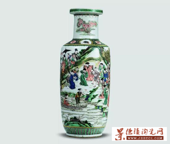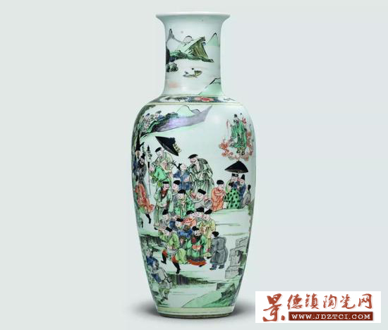 另有一件清康熙五彩《蔡襄造橋》故事圖棒槌瓶,兩瓶題材一致,造型不同。內(nèi)容與畫面上大體類似,又各自豐富其細(xì)節(jié)不同。