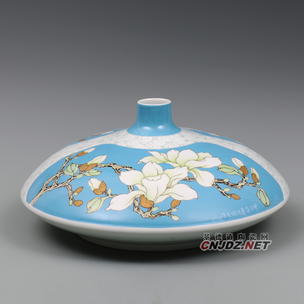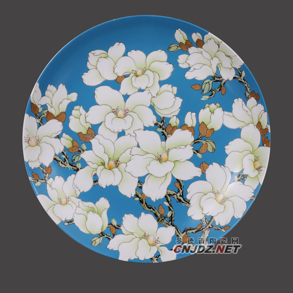 景德鎮(zhèn)的陶瓷藝術(shù)家畫花鳥(niǎo)的很多,其中,花卉里面畫荷花、牡丹的居多,畫白玉蘭的很少。江西省高級(jí)工藝美術(shù)師、青年陶藝家周國(guó)生于2012年始創(chuàng)藍(lán)釉地白玉蘭夢(mèng)系列陶瓷作品被申請(qǐng)專利,作品也廣受好評(píng)。