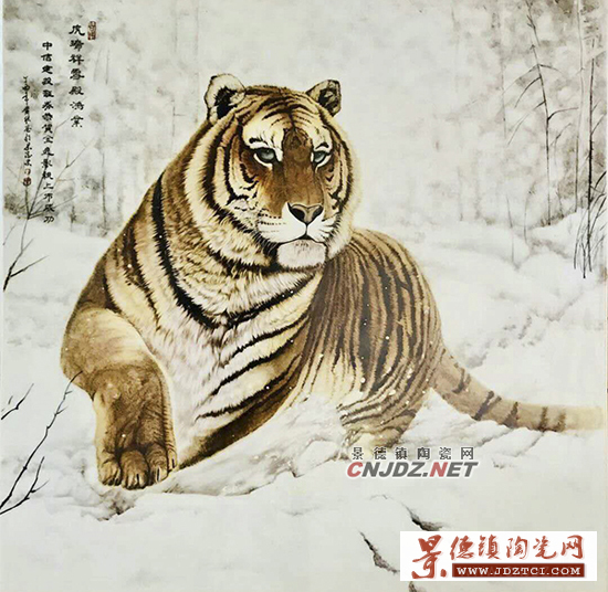 黃欣告訴小編,這件作品是去年中信建投的老板找他,向他預定的一副作品,一開始只說是老虎,公司用。黃欣就用漫天的雪景作為背景,雪地里的老虎傲視群雄,虎瑞祥雪,寓意極好。