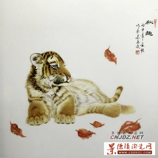 溫馨的色調(diào),稚嫩的幼虎,作品旨在無聲的表達了孩童時期的純真。