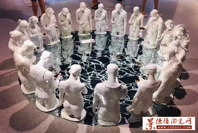 而更讓人驚喜的是創(chuàng)作手法與材料的豐富大大滿足了觀眾對陶藝的想象。綜合材料和3D打印及電子雕刻技術、復合翻模注漿技術、泥條盤注、傳統(tǒng)黑陶、白瓷工藝的突破與創(chuàng)新,彩繪與陶藝的結合,令人感嘆陶藝已不再是我們印象中簡單的泥與火的藝術,而是一個豐富多元的綜合性藝術。