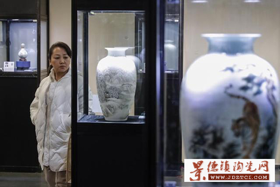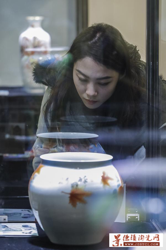 1月16日,參觀者在展覽現(xiàn)場欣賞展出的瓷器作品。。(圖片來源:新華社記者 沈伯韓 攝)