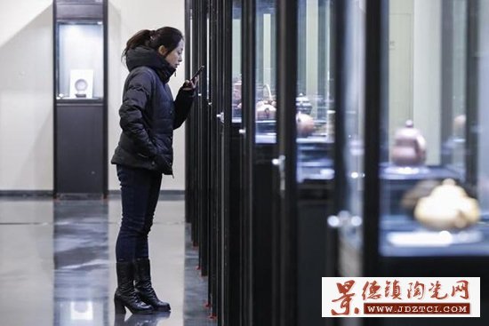 1月16日,參觀者在展覽現(xiàn)場欣賞展出的瓷器作品。(圖片來源:新華社記者 沈伯韓 攝)