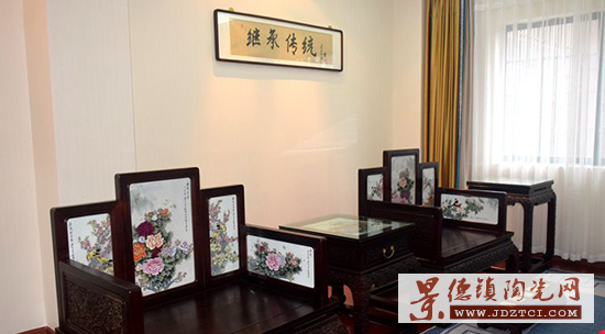 瓷木作品《龍騰紫氣·富貴祥瑞》共64件(套),精選上等紅木進(jìn)行探釘、起釘、開(kāi)料、烘干、平衡、毛料、精料、卯榫、成型、打磨、拋光、油漆等多套繁復(fù)工序,再以張松茂大師粉彩瓷畫(huà)賦予其生命力。瓷畫(huà)以雍容華貴的牡丹為主體,搭配山水、荷花、鴛鴦、玉蘭、春花等元素,瓷畫(huà)與家具構(gòu)成了一幅“富貴祥瑞·龍騰紫氣”的和諧畫(huà)面,莊重端美,艷麗舒適。