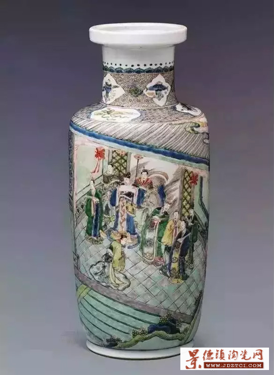 因形似長(zhǎng)圓形燈籠而得名。流行于清雍正、乾隆時(shí)期,造型為直口,短頸,豐肩,筒腹,圈足。