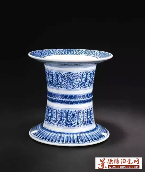 廣口外撇,短頸,身如直筒狀,平底,造型如粗壯的象腿,故名。多見(jiàn)于清初順治、康熙兩朝,品種有青花和五彩。