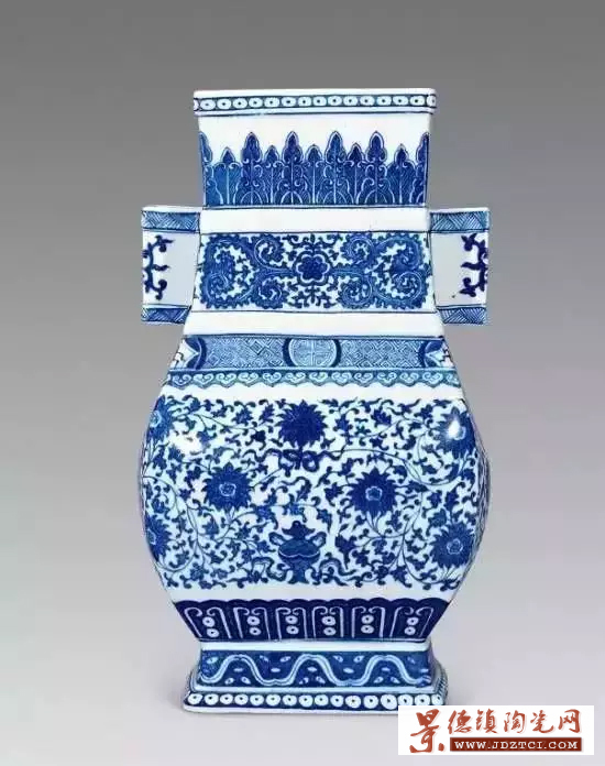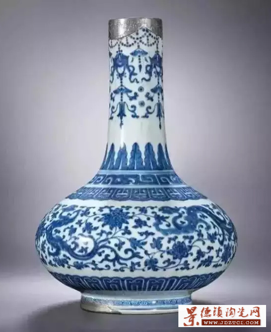 清代雍正朝新創(chuàng)造型,一直延續(xù)至清末宣統(tǒng)朝,成為官窯傳統(tǒng)器形。瓶呈撇口,長(zhǎng)頸,圓腹,圈足,多以青花纏枝蓮為飾,取其“清廉”諧音,專(zhuān)用于皇帝賞賜臣下,意在令其“為政清廉”。