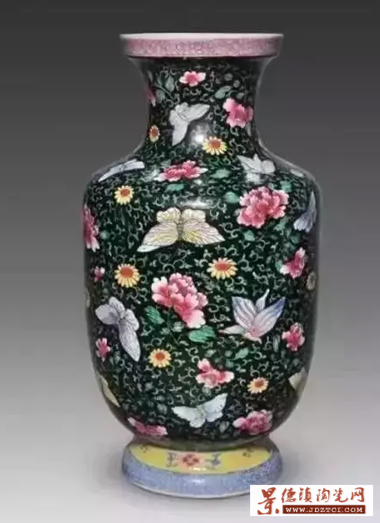 又稱(chēng)“觀音尊”,流行于清代康熙至乾隆時(shí)期?滴跻怀景德鎮(zhèn)窯燒制的瓶式很多,有時(shí)瓶、尊在稱(chēng)呼上不易區(qū)分,一般來(lái)說(shuō),凡口小腹大的均稱(chēng)為瓶。觀音瓶特征是侈口,頸部較短,豐肩,肩下弧線內(nèi)收,至脛部以下外撇,淺圈足,瓶體修長(zhǎng),線條流暢。