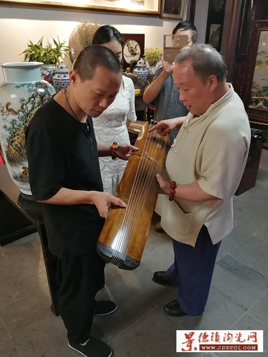 6月19日,徐雪勇受揚(yáng)州廣陵派泰斗劉少椿嫡孫第十二代傳人劉楊大師的邀請來到揚(yáng)州參觀,期間,徐雪勇帶上了自己的原創(chuàng)作品,并以個人的成長經(jīng)歷為起點,立足于傳統(tǒng)陶瓷文化土壤,以當(dāng)代藝術(shù)設(shè)計的眼光,分享了他對根雕藝術(shù)的設(shè)計精神及文化內(nèi)涵的理解。劉楊大師聽后,表示對徐雪勇繪畫精髓的連連稱贊,特別贈送親斫的陰沉金絲楠木古琴,望能因瓷結(jié)緣,以琴動人。這也正是這次跨界藝術(shù)碰撞的最好見證,讓彼此心靈中對千年傳統(tǒng)文化油然而生的敬畏和傳承之心。