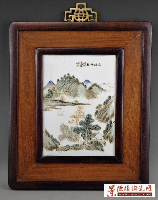 圖13 民國(guó)汪友棠山水紋長(zhǎng)方瓷掛板