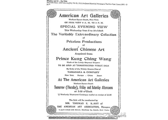 圖1 《紐約時報》1913年2月26日刊登的拍賣廣告
