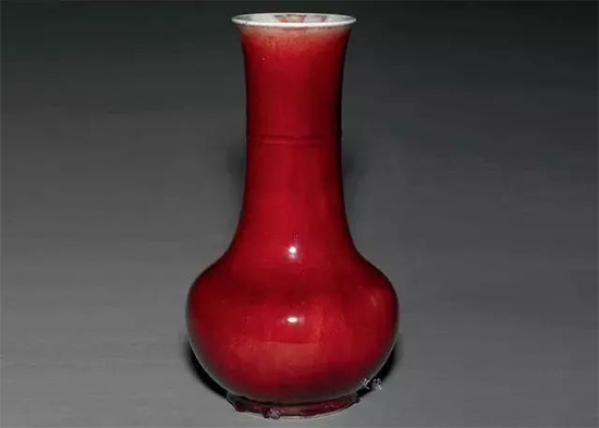 清康熙 郎窯紅釉凸弦紋瓶 故宮博物院藏