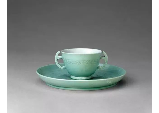 圖3 清康熙西湖水釉錐拱螭紋杯碟 故宮博物院藏