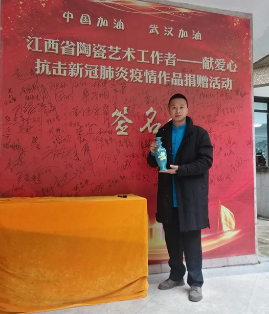 疫情發(fā)生以來,周國(guó)生積極參加江西省美協(xié)、景德鎮(zhèn)市政協(xié)、團(tuán)市委、市新聯(lián)會(huì)、市民革、市美協(xié)、瓷善公會(huì)組織的“抗疫”獻(xiàn)愛心活動(dòng),為疫情捐款共計(jì)5600元。