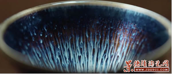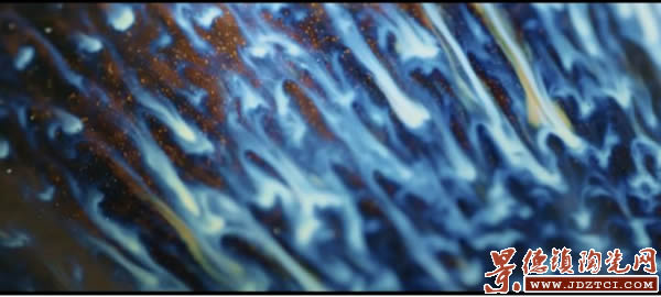 靜置一天,第二天再來(lái)吹第二次釉,為了使“拉絲”效果具有更好的流動(dòng)性和線條感,需要控制好吹釉的厚度和速度。而對(duì)于釉層厚度的控制,除了經(jīng)驗(yàn)以外,反復(fù)試驗(yàn)是必不可少的,由于顏色釉入窯前施釉效果都與成品不一樣,所以具有一定的未知性。只有在1300度的高溫柴窯爐里、燒制5天,出窯后才知道實(shí)際色彩。爐火純青,方得出窯萬(wàn)彩,這種不可預(yù)知性,使顏色釉瓷成為令人期待的陶瓷品種。