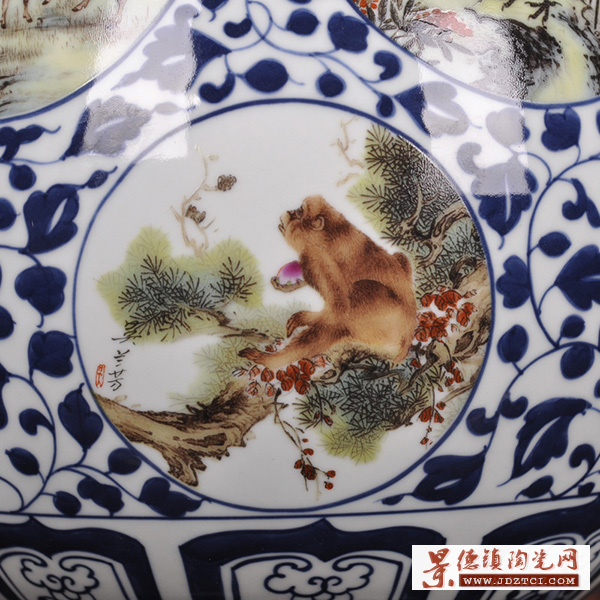 高檔仿古景德鎮(zhèn)陶瓷青花瓷花瓶客廳擺件大號福運滿堂粉彩生肖擺設(shè)